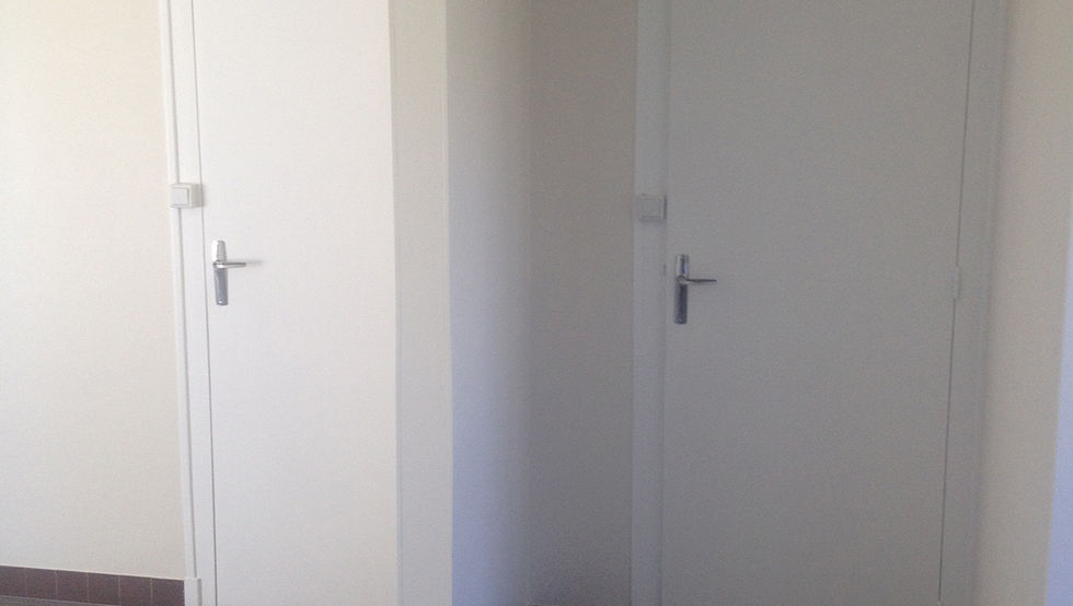 2 chambres /Salle de bain couloir étage : Peinture murs/plafonds/boiseries sur toile de verre existante, ponçage parquet et cirage